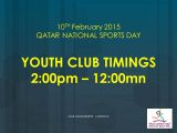Please see below activities for AKC Qatar National Sports Day 2015. Registrations at Al Waha Club Reception (4473-3666/35).